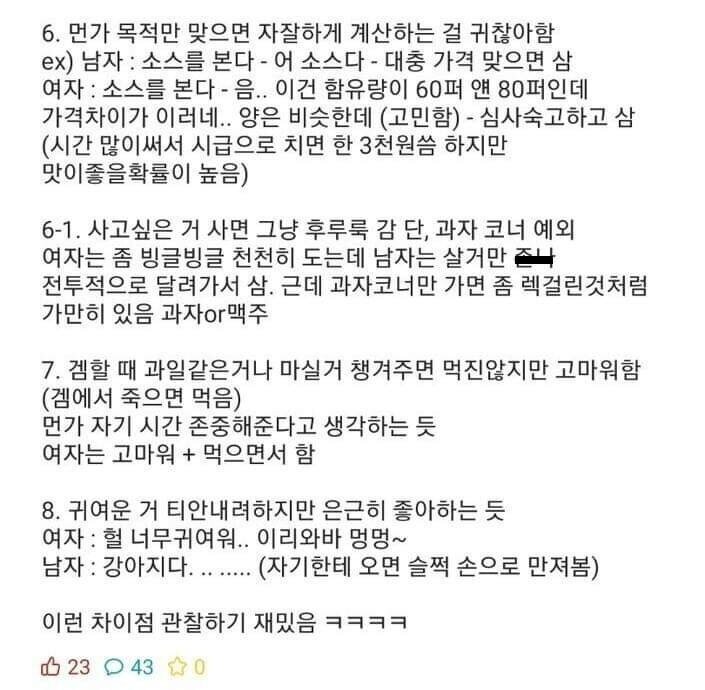 여자 입장에서 바라본 남자의 특징