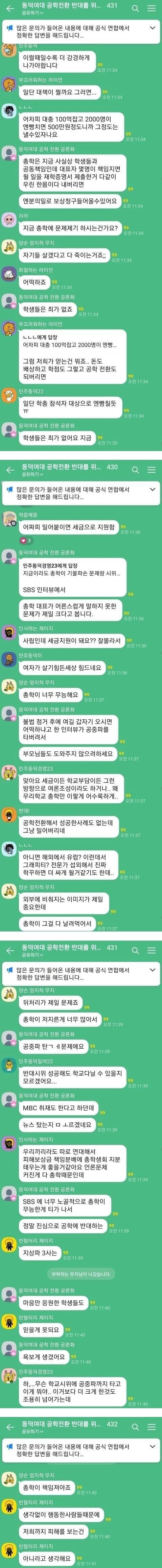 특히, 동덕여대의 공학 전환 반대 목소리가 커지고 있는 가운데, 학생들은 “소멸할지언정 개발하지 않는다”라는 강력한 의견을 내고 있습니다. 총학생회가 학생들과 공동 책임을 지고 있다는 지적이 이어지고 있으며, 일부 학생들은 “책임은 그 몇 명의 대표자가 질 일이 아니다”라며 불만을 토로하고 있습니다.