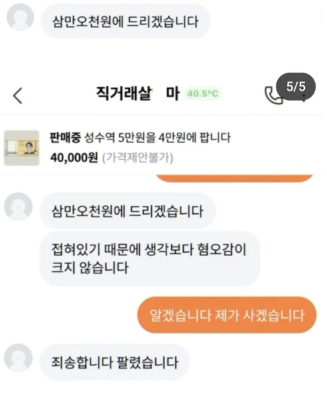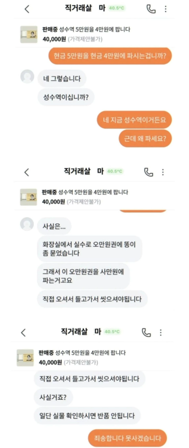 5만원지폐 4만원에 팝니다