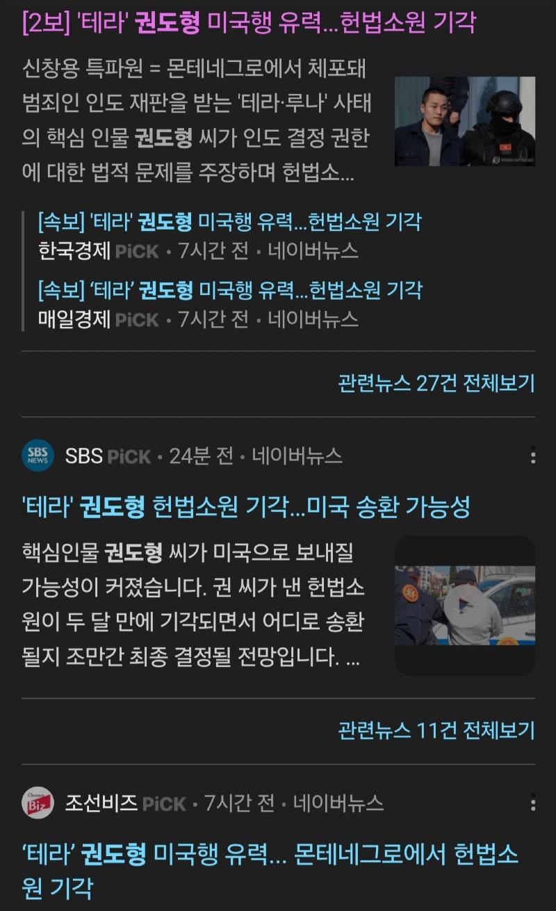 테라 권도형 미국 송환가능성 헌법소원기각확정