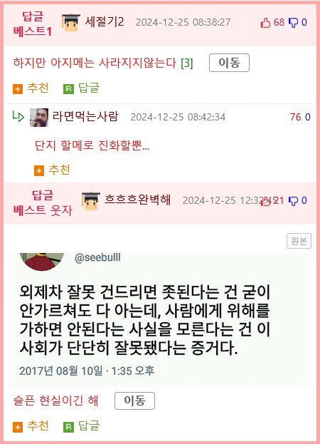 한 사용자는 사회가 사람에게 위해를 가하는 것이 잘못되었다고 주장하며, "외제차를 잘못 건드리면 큰일 난다는 것을 모두 아는데, 사람에게 해를 가해도 괜찮다고 생각하는 것은 이 사회가 심각하게 틀어졌다는 증거"라고 강조했다.