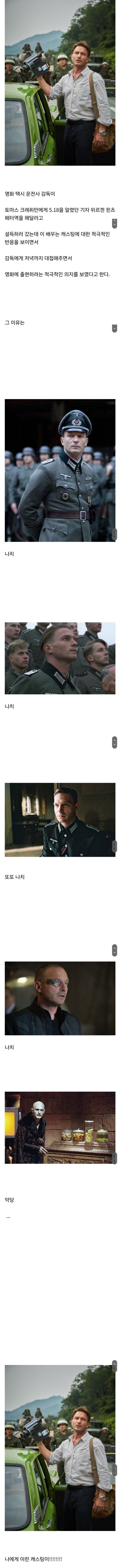 외국 배우가 한국 영화 출연 제의를 받고 기쁨의 눈물을 흘렸다는 충격적인 소식이 전해졌다! 바로 악당 나치 역할로 유명한 토마스 크레취만이 그 주인공이다. 그는 영화 '택시 운전사'의 감독이자, 5.18 민주화 운동에 대한 이야기를 담고 있는 이 작품에서 기자 위르겐 힌츠 페터 역을 맡아달라는 요청을 받았고, 이에 대한 반응이 놀라울 지경이다.