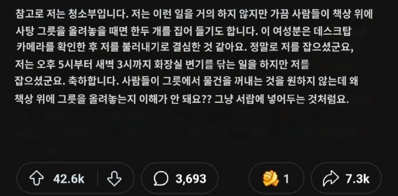 청소부가 직원 책상에 있는 사탕 바구니에서 한두개 집어먹은게 잘못됐다