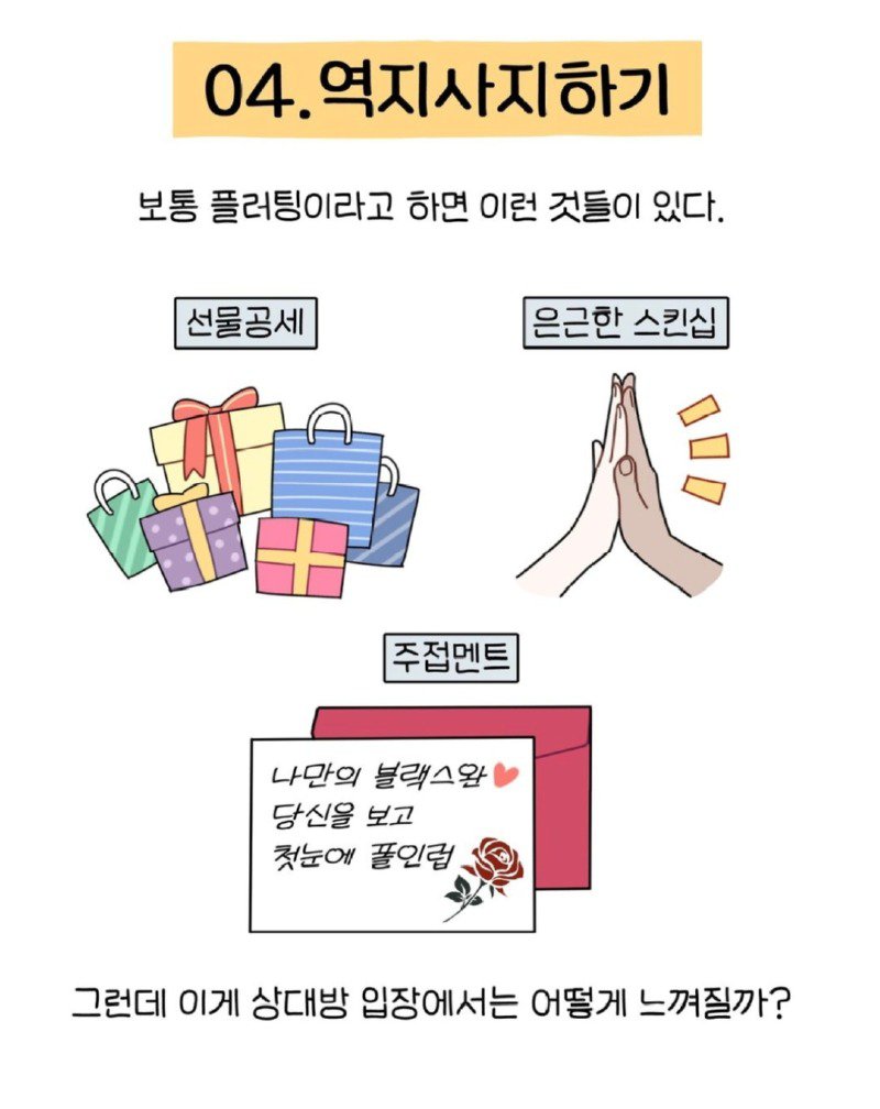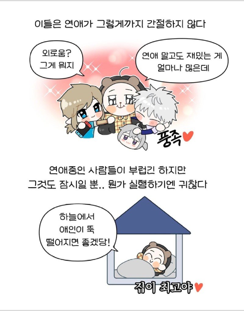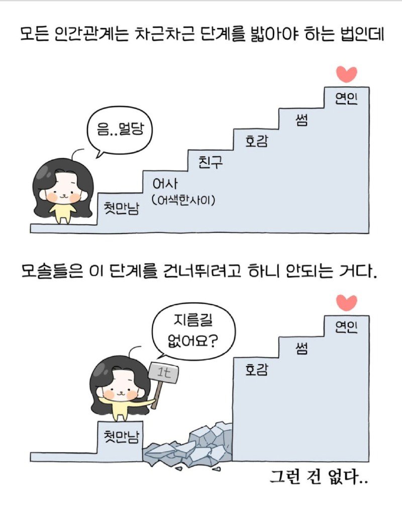 20대 중반까지 모솔인 나는 이런 방법들을 실천하지 않았다. 외로움? 그게 뭔지 모르겠고, 재밌는 일들이 너무 많다! 연애 중인 사람들을 부러워하기는 하지만, 그건 잠시일 뿐이다. 그저 하늘에서 애인이 떨어지기를 바랄 뿐!