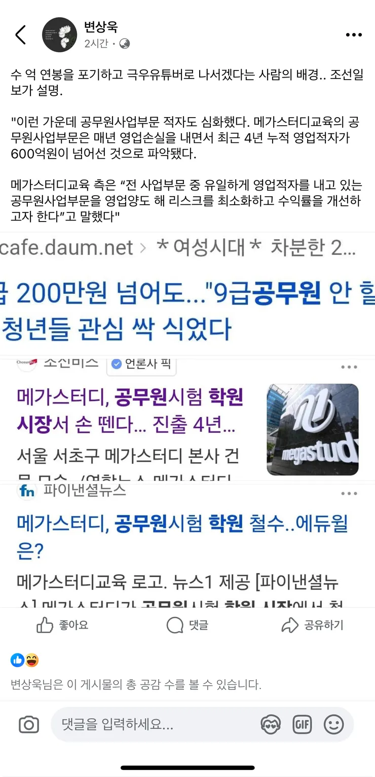 60억 연봉을 포기한 변상욱씨의 선택이 세상을 떠들썩하게 하고 있습니다. 그의 결정은 단순한 연봉 포기를 넘어, 극우 유튜버로의 전환이라는 파격적인 행보를 보여줍니다. 조선일보가 전한 바에 따르면, 공무원 사업 부문의 적자가 갈수록 심화되어, 메가스터디교육의 공무원 사업 부문은 최근 4년 간 누적 영업적자가 무려 600억원에 달하고 있는 실정입니다.