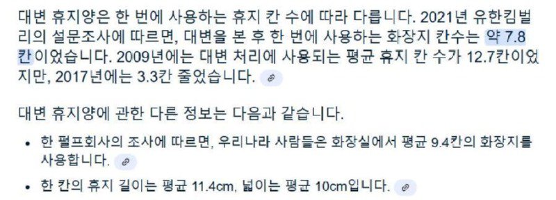 한국인의 대변뒷처리 휴지쓰는 양