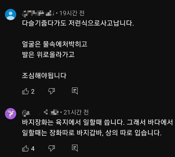 더욱 섬뜩한 이야기는 한 네티즌의 경험에서 나왔습니다. 그는 스킨스쿠버와 수영을 잘 하는 운동선수 출신 친구가 이 일체형 장화를 신고 낚시를 하다 가슴까지 오는 바다에 빠져 돌아가셨다는 기사를 전했습니다. 물속에서 가슴으로 물이 들어오고 발쪽은 공기로 차면서 자동으로 물구나무 서기를 하게 되는 상황이 발생한다고 경고했습니다.