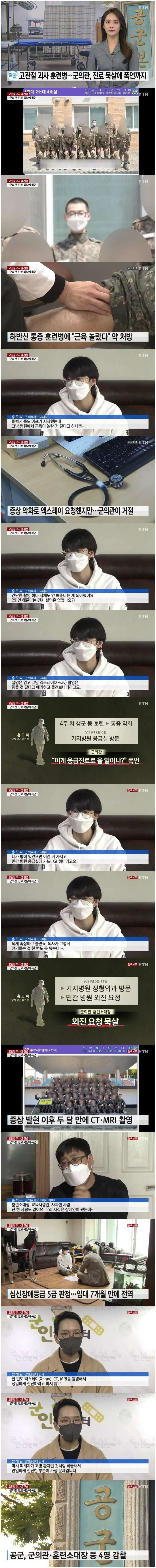 훈련병 홍모씨는 자신의 하반신에서 느껴지는 극심한 통증을 호소하며 군의관에게 진료를 받기 위해 다가갔지만, 군의관은 "근육이 놀란 것 같다"며 간단한 약만 처방하고 그를 내보냈다고 전해진다. 이후 홍씨는 증상이 악화되어 엑스레이 촬영을 요청했지만, 군의관이 이를 거부하며 "엑스레이 촬영은 힘들 것 같다"는 모호한 답변을 했다고 한다.
