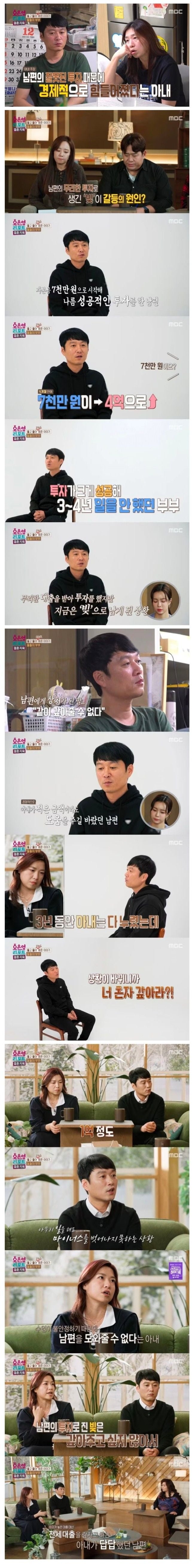 남편은 과도한 대출을 통해 투자에 나섰고, 이것이 결국 그들의 삶을 망치게 만든 결정적인 요소였습니다. “같이 갚아줄 수 없다!”라는 아내의 절망적인 외침은 그들의 사이를 더욱 악화시켰는데요, 아내는 더이상 남편을 믿을 수 없게 되었습니다.