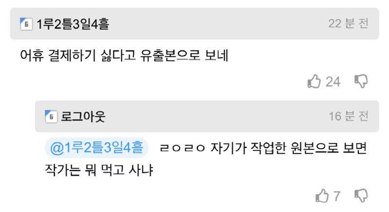 작가가 직접 자신의 작업물을 보려고 해도 결제를 해야 하는 상황이라니, 이 얼마나 아이러니한 일인가! 댓글을 통해 한 팬은 “인생은 짧고 만화는 긴 법, 차라리 유출본으로 보겠어요!”라며 유출을 선택하겠다는 다소 극단적인 발언을 했다.