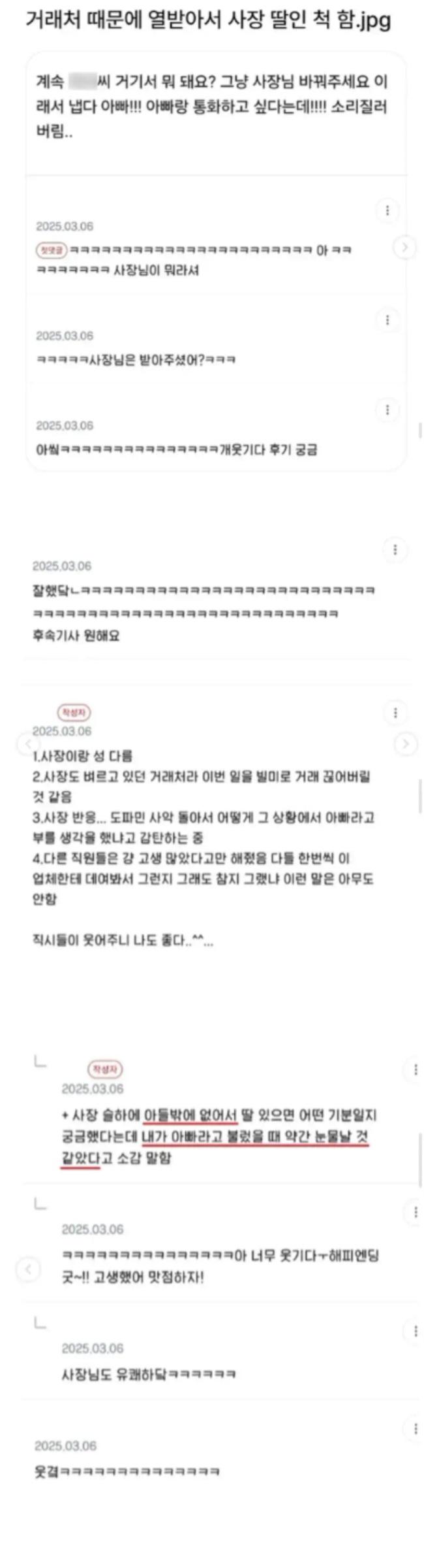 거래처때문에 열받아서 사장 딸이라고 한 직원+___+;;;