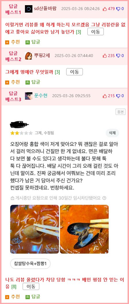 또 다른 사용자도 “이럴 거면 리뷰를 왜 하게 하냐”며 의견을 남기며 배달의 민족의 리뷰 시스템에 의문을 제기했습니다. 이것이 과연 소비자의 목소리를 중시하는 사회에서 볼 수 있는 합당한 조치인지, 논란은 계속될 것으로 보입니다. 배달의 민족은 이 사건에 대해 어떻게 대응할지 귀추가 주목됩니다.