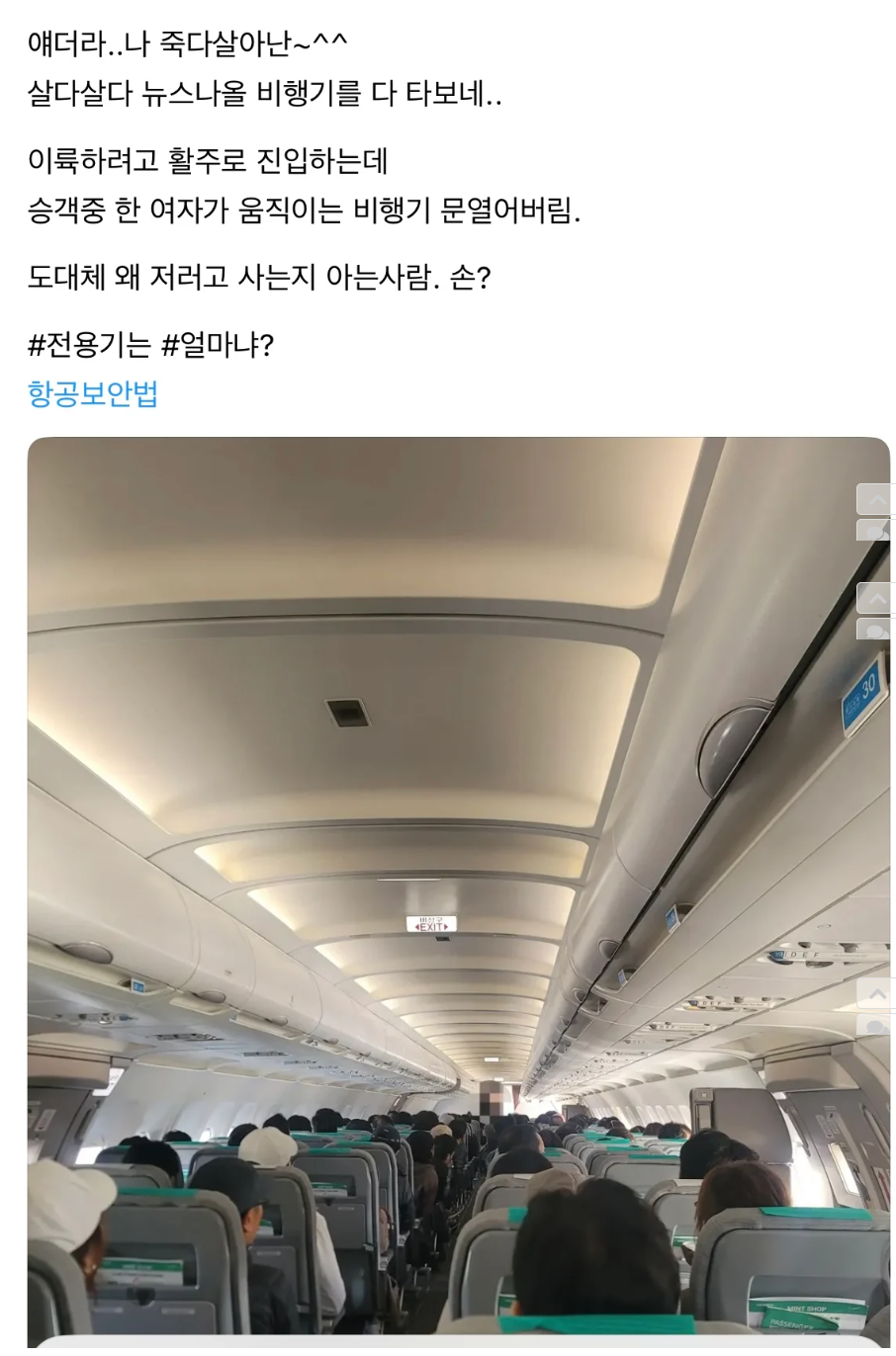 항공보안법에 따르면, 이러한 비상문 개방은 중대한 범죄에 해당하며, 이를 어길 시 법적 처벌이 불가피하다. 전문가들은 “비행기 문을 여는 것 자체가 얼마나 위험한 일인지 모르는 것 같아 안타깝다”며 안타까움을 표했다. 특히, "전용기는 얼마냐?"라는 질문이 쏟아지며 여객기 안전과 보안에 대한 관심이 더욱 높아지고 있다.