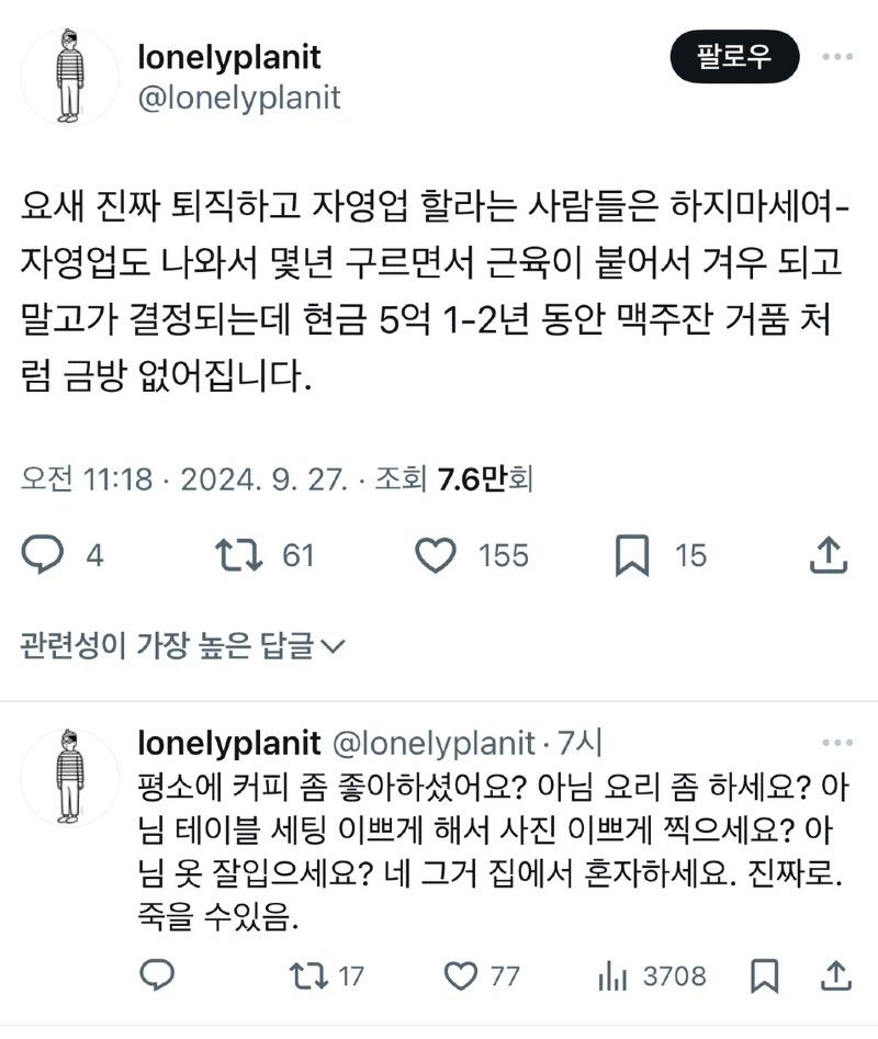 더욱 충격적인 건 그의 카페 운영! 무려 1,400만 원의 월세를 감당하면서 단 한번도 흑자를 내지 못했다는 사실이다. 그는 사업이 순조롭게 진행될 거라는 착각에 빠져 있었고, 이로 인해 수많은 친구들이 비싼 커피 한 잔으로 몇 시간씩 카페에 앉아 있었던 순간을 묘사하며 그의 불행한 이야기를 고스란히 폭로하고 있다.