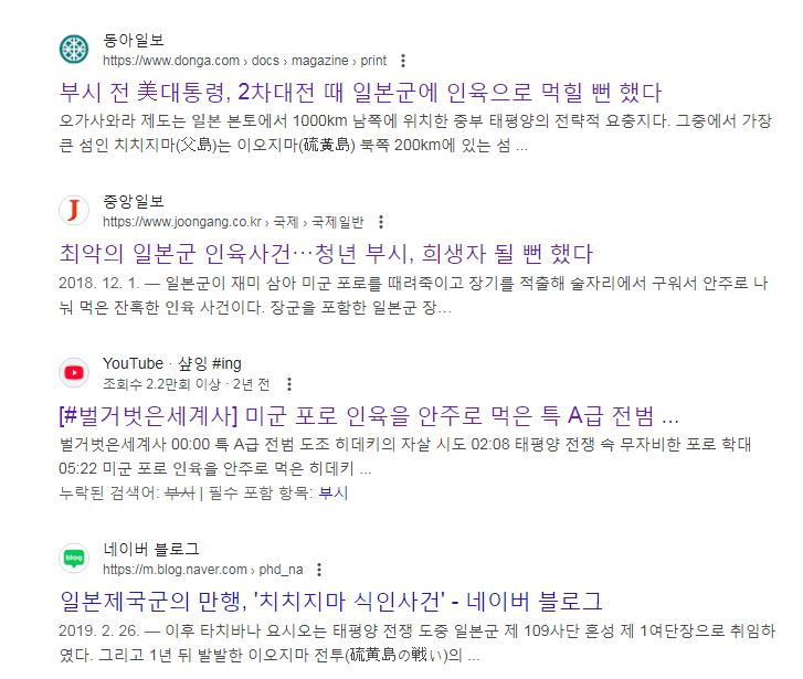 미국의 전 대통령 부시도 참전 당시 포로로 인육으로 먹힐 뻔했고