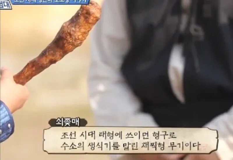 조선 시대, 역사 속의 신비로운 무기인 ‘험대’가 드디어 베일을 벗었다! 하지만 이 무기는 생각보다 더 충격적이다. 바로, “쇠좆매”라 불리는 태형에 쓰이던 형구다. 이 무기의 정체는 끔찍하게도 수소의 생식기를 말려서 만든 채찍형 구조라고 한다!