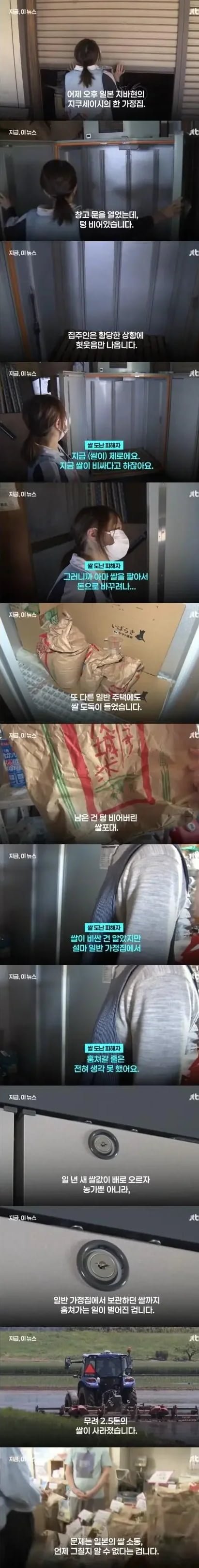 최근 1년간 쌀값이 두 배로 상승하면서 농가뿐 아니라 일반 가정집의 쌀까지도 도둑의 손길에 사라지고 있다. 무려 2.5톤의 쌀이 한꺼번에 없어졌다는 소식이 전해지며, 일본 전역이 쌀 도난 사건으로 떠들썩하다.