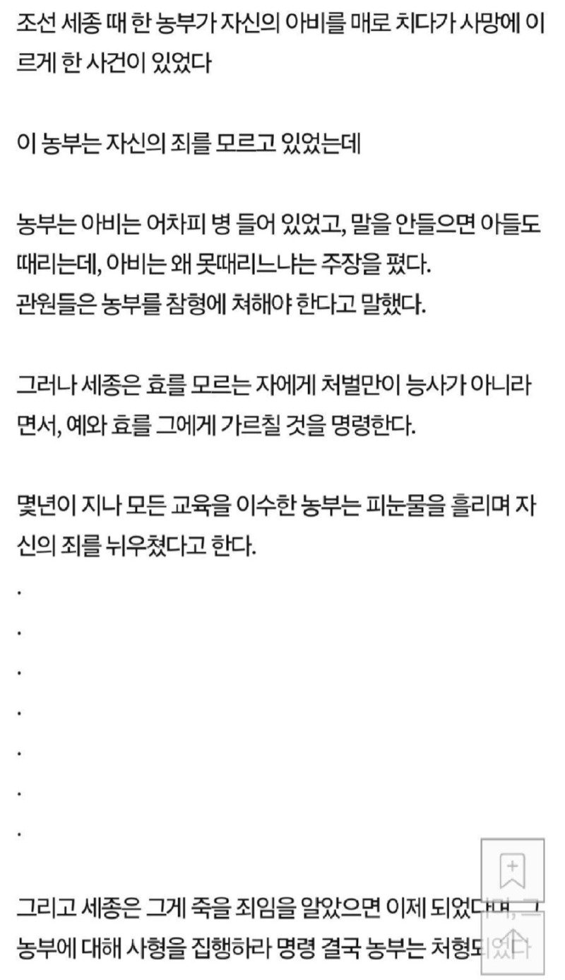 조선시대, 끔찍한 사건이 발생했다! 한 농부가 아버지를 매로 치다가 사망에 이르게 한 shocking한 이야기가 세종대왕 시대에 전해진다. 이 농부는 자신의 죄를 전혀 깨닫지 못하고, 아버지가 병들어 있으니 맞아도 괜찮다고 주장하며 충격적인 논리를 펼쳤다고 한다. "아버지가 말을 듣지 않으면 나도 때릴 수 있는데, 아버지는 왜 못 때리냐?"라는 황당한 주장을 한 것이다.
