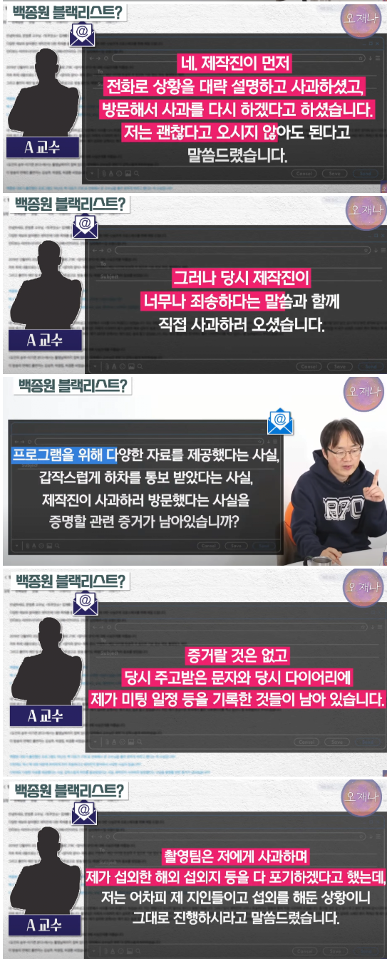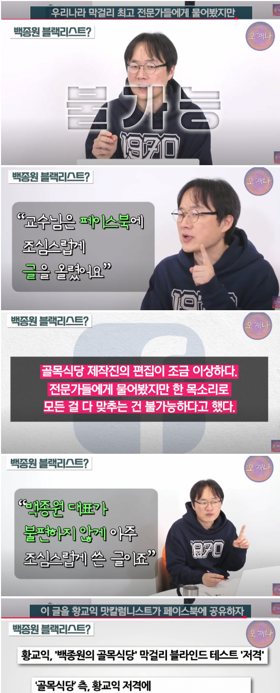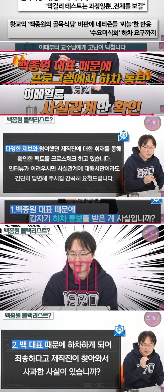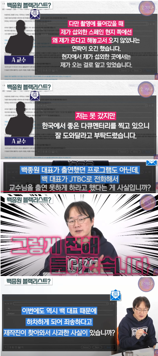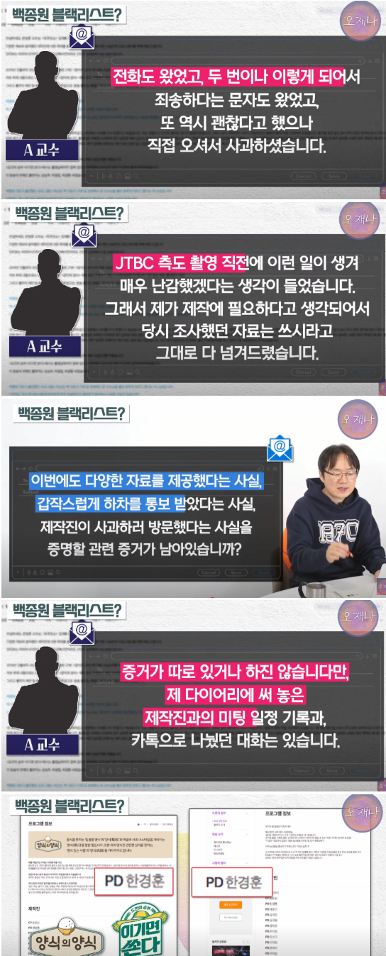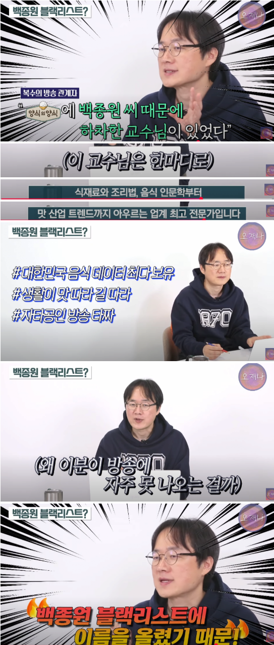 백종원의 블랙리스트로 방송가에서 잘린 교수