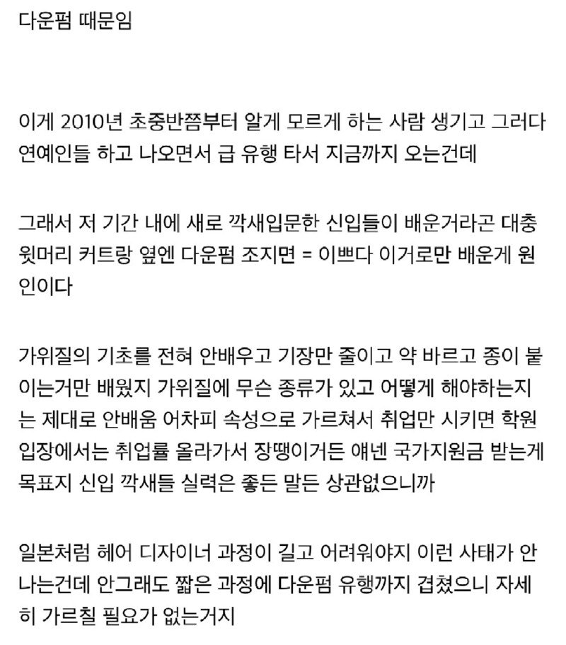 헤어스타일갤에서 분석한 요즘 미용사들 실력부족 이유