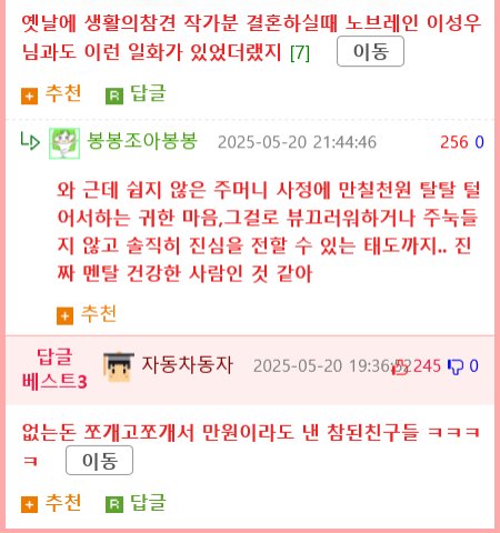 이번 결혼식에서 상남자 한 명이 축의금으로 낸 1만원이 큰 화제를 모으고 있다! 결혼식 참석자들은 당시 낼 수 있는 최대한의 금액으로 통일했지만, 예비 신랑이 바들바들 떨며 “이 정도면 괜찮겠지?”라는 질문에 모두가 고개를 끄덕였다. 제자리 걸음하던 그 분위기 속에서 한 남자는 “조금만 더 내야 하지 않겠냐”며 내심 고민에 빠져있었다고 한다.