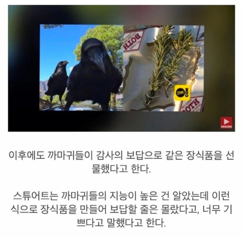 하지만 이야기는 여기서 끝나지 않았다. 어느 날, 스튜어트가 집밖으로 나가보니 그가 상상하지 못했던 놀라운 선물이 기다리고 있었다. 소나무 가지에 캔 따개를 장식한 독특한 선물이 놓여 있었던 것이다! 스튜어트는 까마귀들의 지능이 높다는 사실은 알고 있었지만, 이처럼 그들이 자신에게 감사의 표시로 장식품을 만들어 줄 줄은 몰랐다고 말했다. 그의 감정은 설명할 수 없을 만큼 기쁘고 감동적이었다고 전해진다. 누구도 예상치 못한 이 특별한 관계, 과연 까마귀들이 선물로 무엇을 더 보여줄지 기대가 된다!