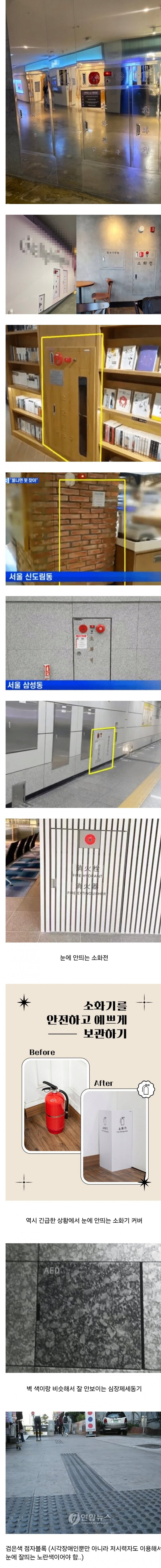 특히 병원과 같은 공공기관에서는 심장제세동기의 벽 색상조차 주변과 흡사해 ‘모든 생명’을 구할 수 있는 소중한 장비가 무시되는 형국이다. 더군다나 저시력자를 배려하지 않은 검은색 점자블록은 실로 심각한 사람들의 안전 문제를 심화시키고 있다는 주장도 만만치 않다.