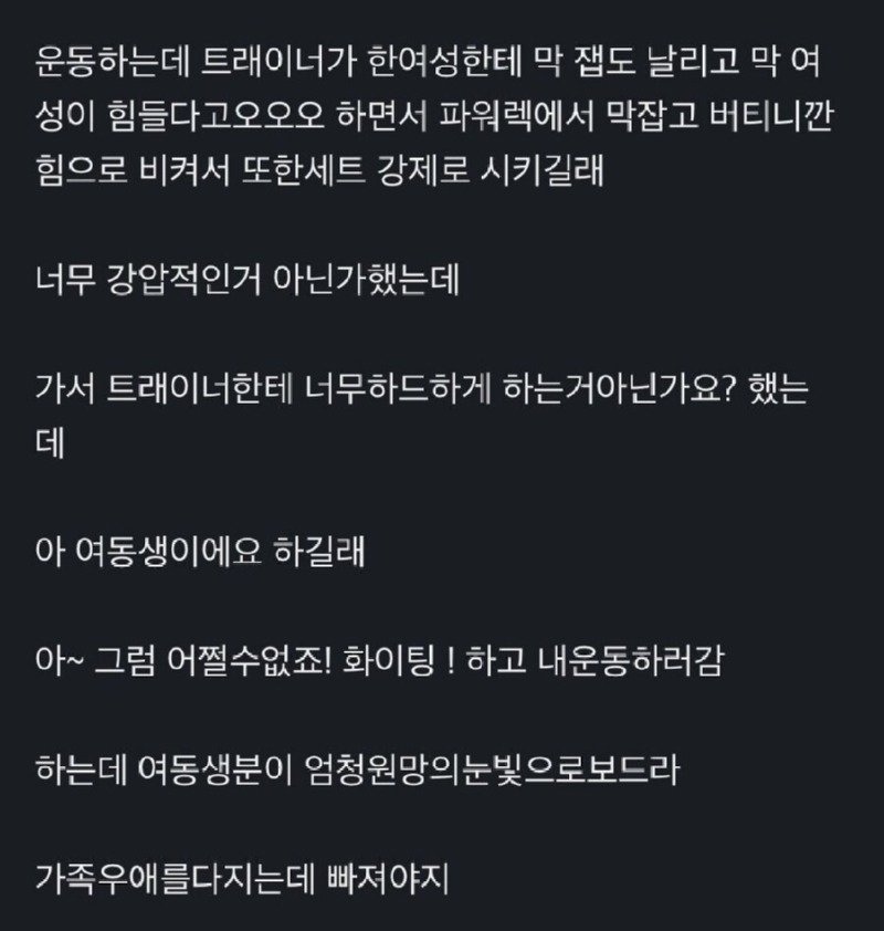 헬스장에서 트레이너가 너무 강압적이어서 한 소리 하려고 한 사람.jpg