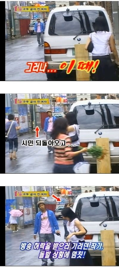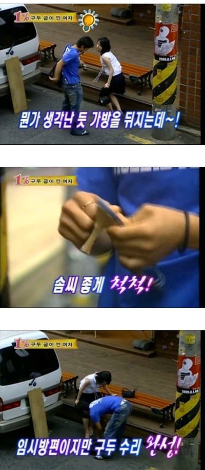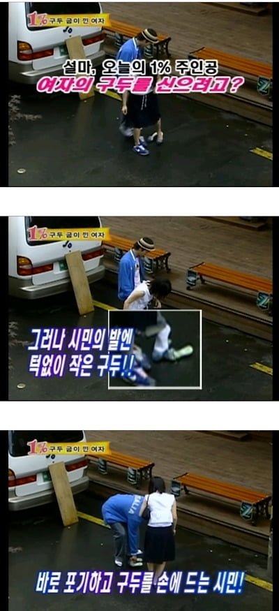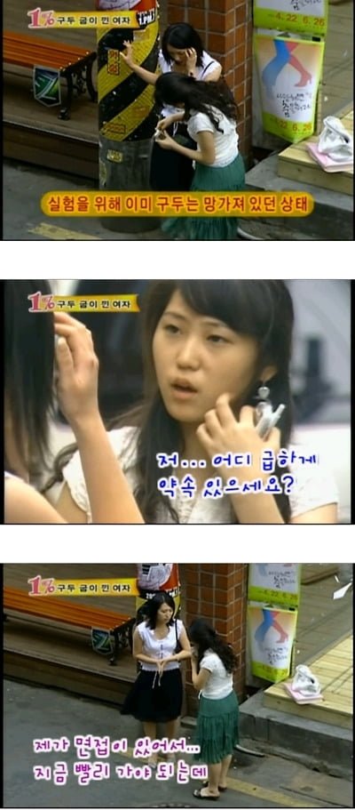 본인실수로 구두굽이 망가진 여성을본 시민들의 반응 관찰카메라.jpg