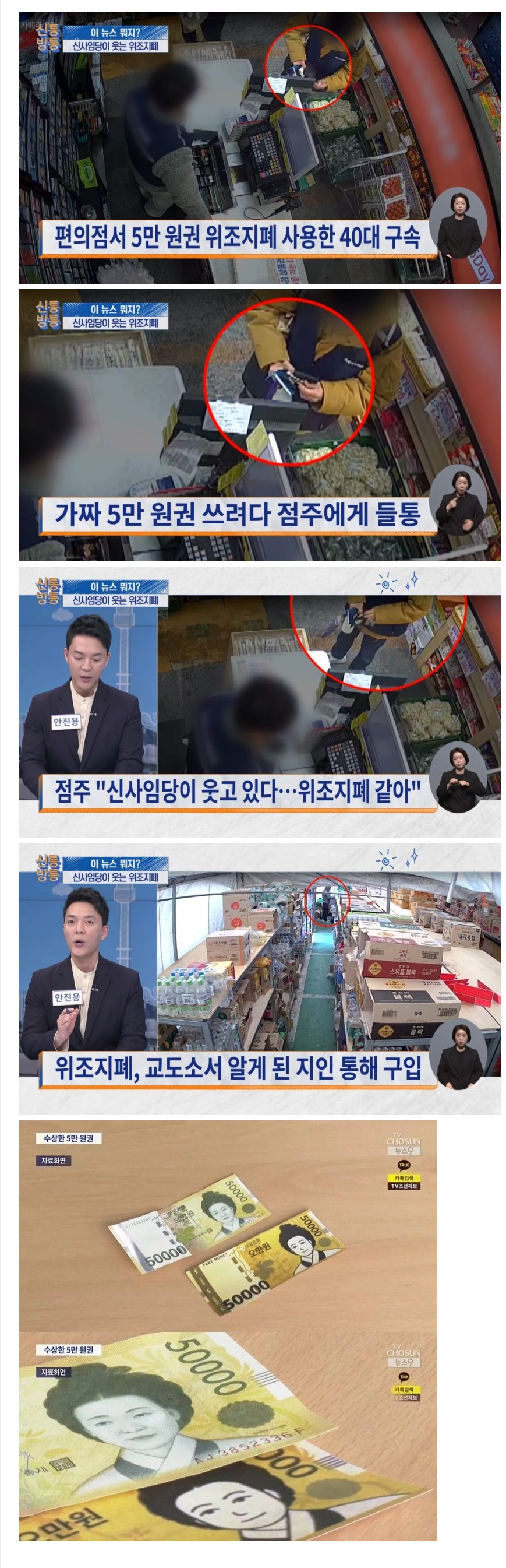 수상한 5만원권은 "총재 50000"이라는 의문스러운 문구와 함께, 잘못된 일련번호를 지니고 있어, 위조 지폐의 전형적인 특징을 그대로 드러냈다고 한다. 이를 기회로 TV 조선은 사건을 심층 분석하며 보도했고, 이후 많은 사람들이 이 사건에 대해 뜨거운 관심을 보이고 있다.