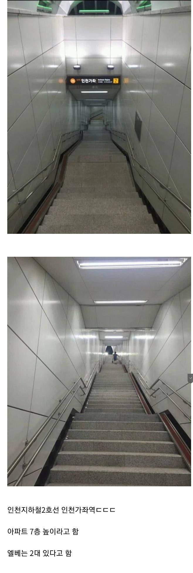 인천의 지하철역, '인천가좌역'이 공포의 장소로 떠오르고 있습니다! 이 역은 아파트 7층 높이에 해당하는 출입구 계단 124개로 유명해졌으며, 승객들의 고통이 끊이지 않고 있습니다. 지하철 2호선의 이 역은 지상 1층에서 지하 3층까지 내려가는 구조로, 지하 대합실을 지나 침착하게 이동하는 것이 꿈만 같습니다. 그러나 이를 위해선 높은 계단을 내려와야 하기에, 많은 이들은 '가좌 던전'이라 부르며 혀를 차고 있습니다.