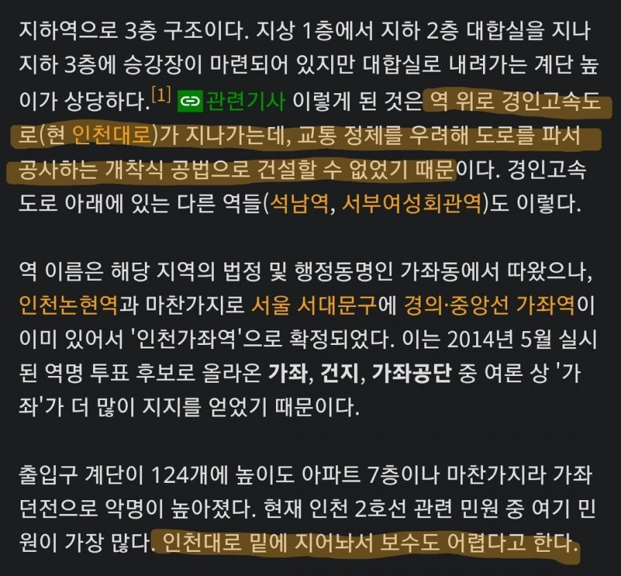 놀랍게도, 이러한 어려움은 도로 공사로 인해 발생한 것이라고 합니다. 경인고속도로가 바로 위에 지나가기에, 지하로 내려가면서도 안전을 고려해야 했던 것입니다. 더 놀라운 것은, 인천가좌역이 실제로 위치한 법정 및 행정동과는 다른 서울 서대문구의 '가좌역' 때문에 이렇게 이름 지어졌다는 사실! 2014년에 실시된 역명 투표에서 '가좌'가 선택받았지만, 이로 인해 인천 주민들은 더욱 불편하게 지내고 있는 상황입니다.