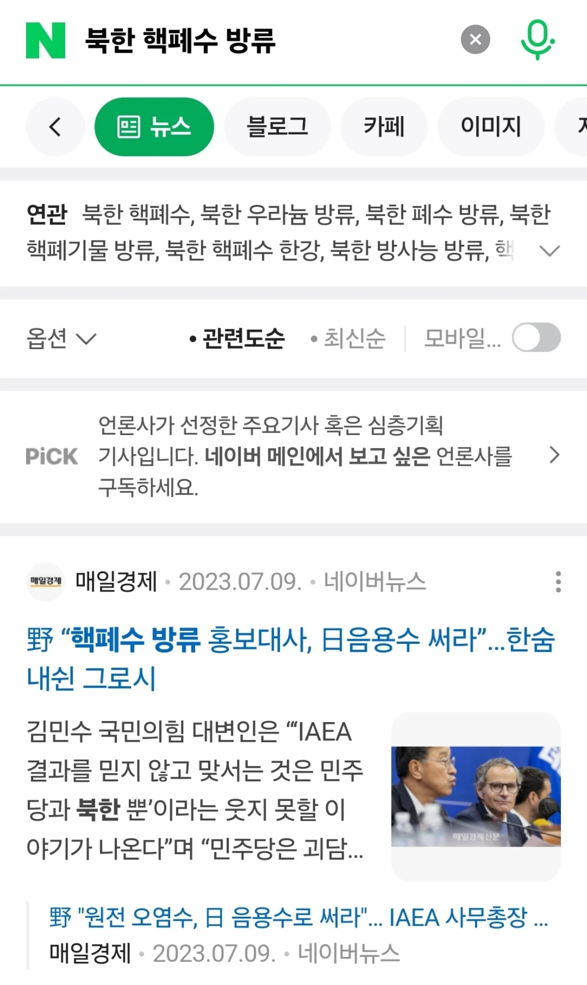 정작 우리나라선 북한 핵폐수 방류 기사 모두 삭제됐다함 ㅋ