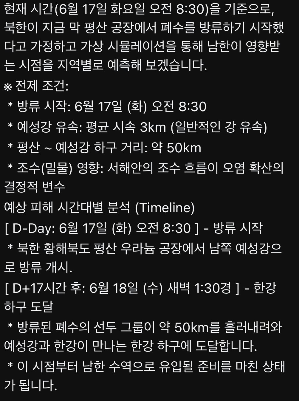 2025년 6월 12일, 기자 브루스 송학 청이 전한 바에 따르면, 북한의 이러한 무모한 행동은 과거의 파이프라인 누수 문제와는 전혀 다른 차원의 해양 오염을 초래할 수 있다. 과거 우려했던 파이프라인 노후화로 인한 방류와는 달리, 이번에는 불법으로 우라늄 폐수를 직접적으로 남한으로 흘려보내는 것이 확인되었다.