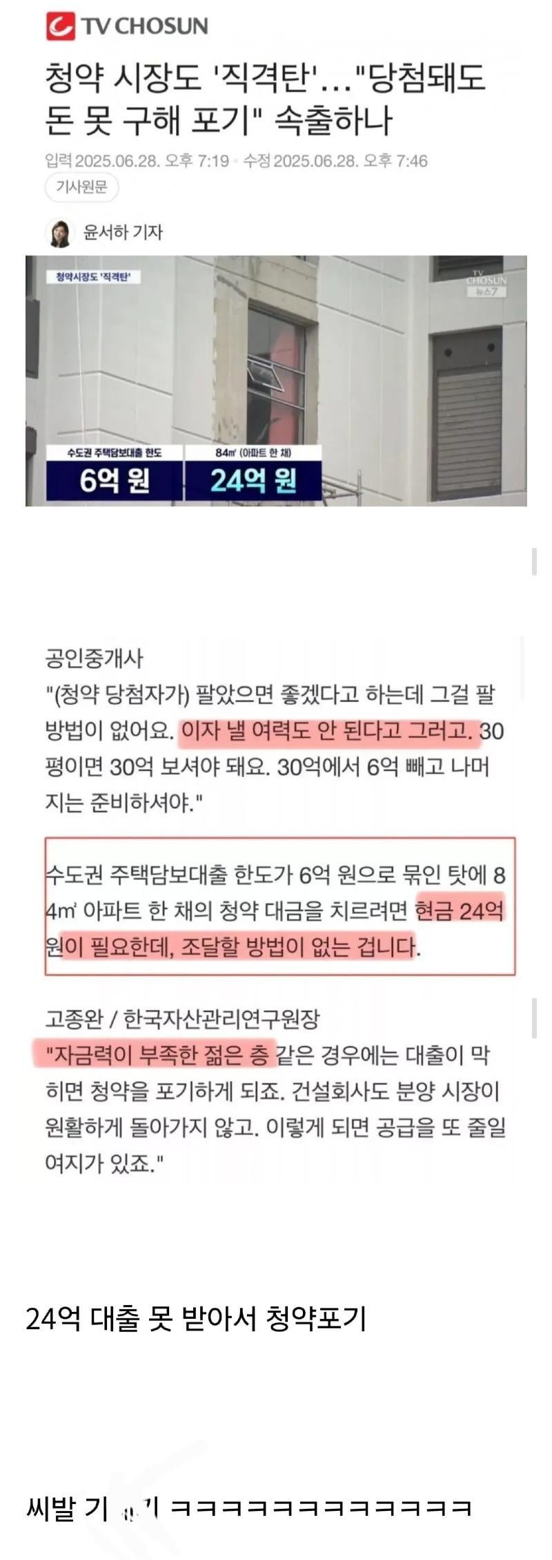 청약시장도 직격탄, 돈 못 구해 포기 속출하나 ㄷㄷ.jpg