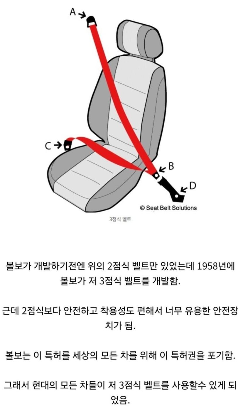 볼보가 세상을 구하기 위해 특허를 포기한 충격적인 사실이 밝혀졌다! 1958년, 자동차 안전의 혁신적인 진화를 이끈 볼보가 바로 그 주인공이다. 이전까지 대부분의 차량에서 사용되던 2점식 벨트는 안전성과 편안함의 한계를 가지고 있었다. 그러나 볼보가 개발한 3점식 벨트는 이 모든 문제를 해결했다!