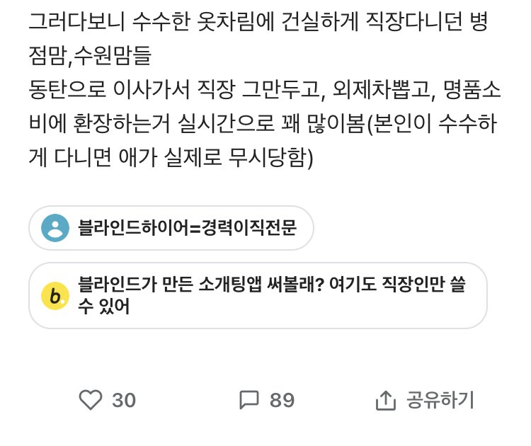 심지어는 이와 관련된 블라인드하이어라는 이직 전문 플랫폼까지 등장했는데, 직장인만 사용할 수 있는 소개팅 앱으로 직장인들끼리만의 정보가 오가는 상황입니다. 믿지 못하겠다면, 평일 점심시간에 동탄 센트럴파크나 광장 쪽에서 엄마들이 모여 있는 테이블 옆에 앉아 점심을 먹어보라고 권유합니다. 소문에 따르면, 이곳의 이야기는 순도 99%의 사실이니 조심하라는 것이죠.