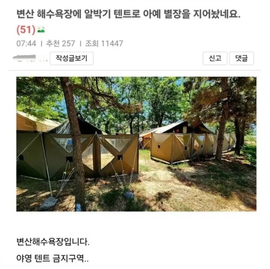 변산 해수욕장에 충격적인 소식이 전해졌습니다! 바다를 끼고 있는 이 아름다운 해수욕장에 단순한 야영 텐트가 아닌, 마치 별장처럼 보이는 엄청난 구조물이 자리 잡고 있다는 것입니다. 해당 지역은 야영 텐트 금지구역임에도 불구하고, 텐트가 무려 별장처럼 세워져 있다니!