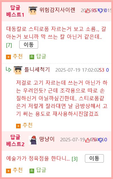 정육점에서 펼쳐지는 믿기 힘든 이야기가 세상을 뒤흔들고 있다! 정육점 아저씨가 보여주는 손기술은 그야말로 레전드급으로, 신선한 고기보다 한층 더 시선을 사로잡는다. 심지어 정육점 내부에는 경이로운 조각품들이 매달려 있는데, 이들이 무거운 스티로폼으로 만들어졌다는 사실이 밝혀졌다! 많은 이들이 이 세계적인 예술작품이 진짜 석고로 만들어진 것으로 오해하고 있었지만, 제작진이 직접 확인한 결과 이는 스티로폼으로 조각된 것이었다. 스티로폼으로 이렇게 웅장한 작품을 만드는 것은 평생 처음 보는 경이로운 경험!