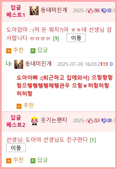 이에 도아의 엄마는 혼란스러움 속에서 "저 돈은 뭐지?"라며 의심을 품었습니다. 그러나 곧이어 "아, 네. 선생님 감사합니다!"라고 답하며 어리둥절한 표정을 지었습니다. 도아의 아빠는 퇴근 후 집에 돌아와 도아의 소식을 듣고는 감정을 주체하지 못하며 "으핳핳핳! 헿으헿헿헿헿헤헿!"이라며 웃음을 터뜨렸습니다.