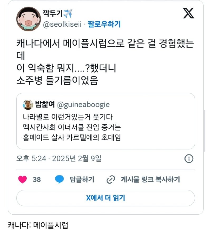 각 나라의 카르텔이 서로 다른 심볼로 그들의 내부 사회에서의 신뢰도를 평가하고 있다는 충격적인 사실이 드러났다! 한국의 카르텔은 초록병에 담긴 들기름과 소주병의 조합으로 신뢰받는 회원이 된다는 것을 보인다. 이 기이한 초대장은 최근 한 소셜 미디어에서 폭발적인 반응을 얻고 있다.