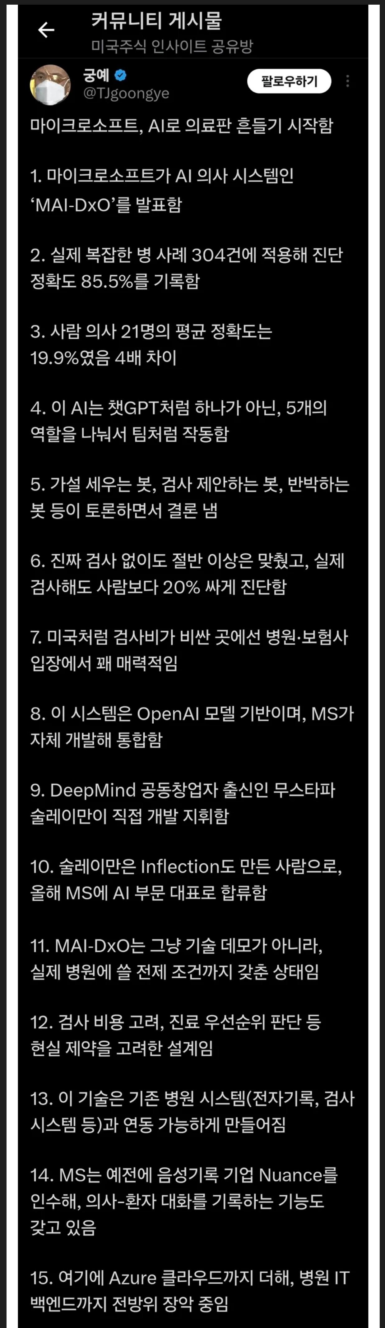 이 시스템은 단순한 기술 데모가 아니라, 실제 병원에서 사용하기 위한 준비가 이미 되어 있다고 전해졌습니다. 검사 비용을 고려하고 진료 우선순위를 판단하는 등의 현실적인 제약을 반영하여 설계되어, 기존 병원 시스템과의 연동이 가능하도록 만들어졌습니다. 마이크로소프트는 과거에 음성 기록 기업 Nuance를 인수하여 의료 분야의 혁신을 더욱 가속화하고 있습니다. 이제 AI가 의료의 미래를 어떻게 바꿀지 전 세계가 주목하고 있습니다!