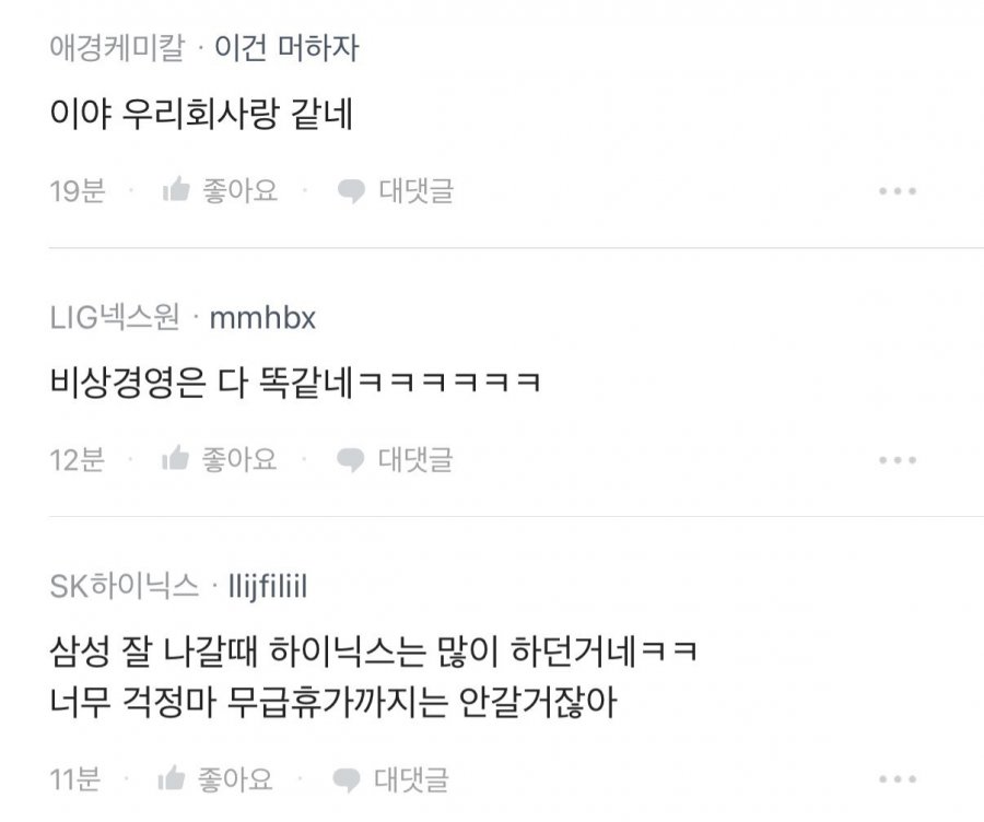 한 네티즌은 애경케미칼의 상황조차 비슷하다고 지적하며 "비상경영은 모두 똑같네"라고 풍자했습니다. 또 다른 이 역시 SK하이닉스를 언급하며, 지나치게 걱정할 필요는 없다고 하지만 무급휴가까지 가는 상황은 피해야 하지 않을까요? 삼성의 상황, 과연 진실은 무엇일까요? 이 모든 것이 실화인지 확인할 방법은 없는 것일까요?
