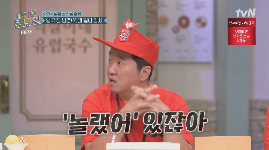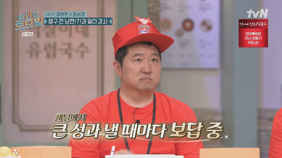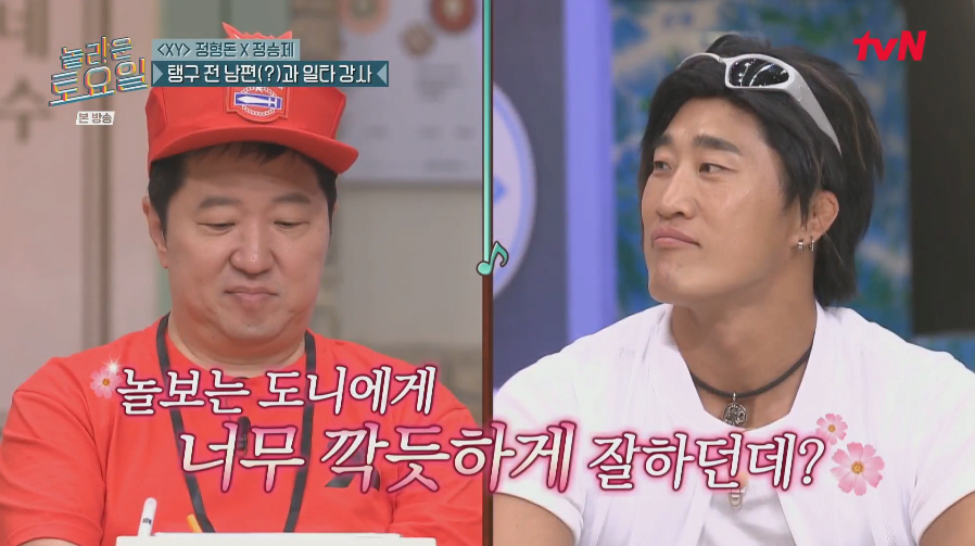 도니가 놀보의 은인이었다는 충격적인 사실이 밝혀졌다! 토요일 저녁, tvN의 인기 프로그램에서는 정형돈과 정승제가 탱구의 전 남편(?), 그리고 일타 강사와 함께하는 스페셜 방송이 진행됐다. 놀보는 도니에게 너무 깍듯하게 잘했던 순간들이 방송 중 깜짝 공개되며 시청자들을 경악하게 만들었다.