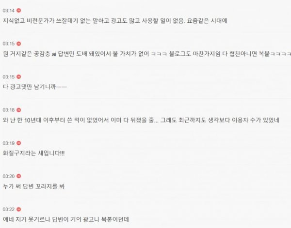 또한 사용자는 "AI 답변만 가득하고 블로그도 광고로 도배되어 가치가 없다"며 불만을 토로했다. 이는 네이버 지식인이 과거로부터 사용자들로부터 잊혀져 가고 있음을 시사하는 대목이다. 특히, 어떤 이들은 "10년 전부터 이용하지 않았지만, 여전히 사용자 수가 있었던 것에 놀랐다"고 말하며 그 쇠퇴 속도를 체감하고 있다. 결국, 네이버 지식인은 지금까지와는 전혀 다른 방향으로 나아가야 할 위기에 처해 있다.