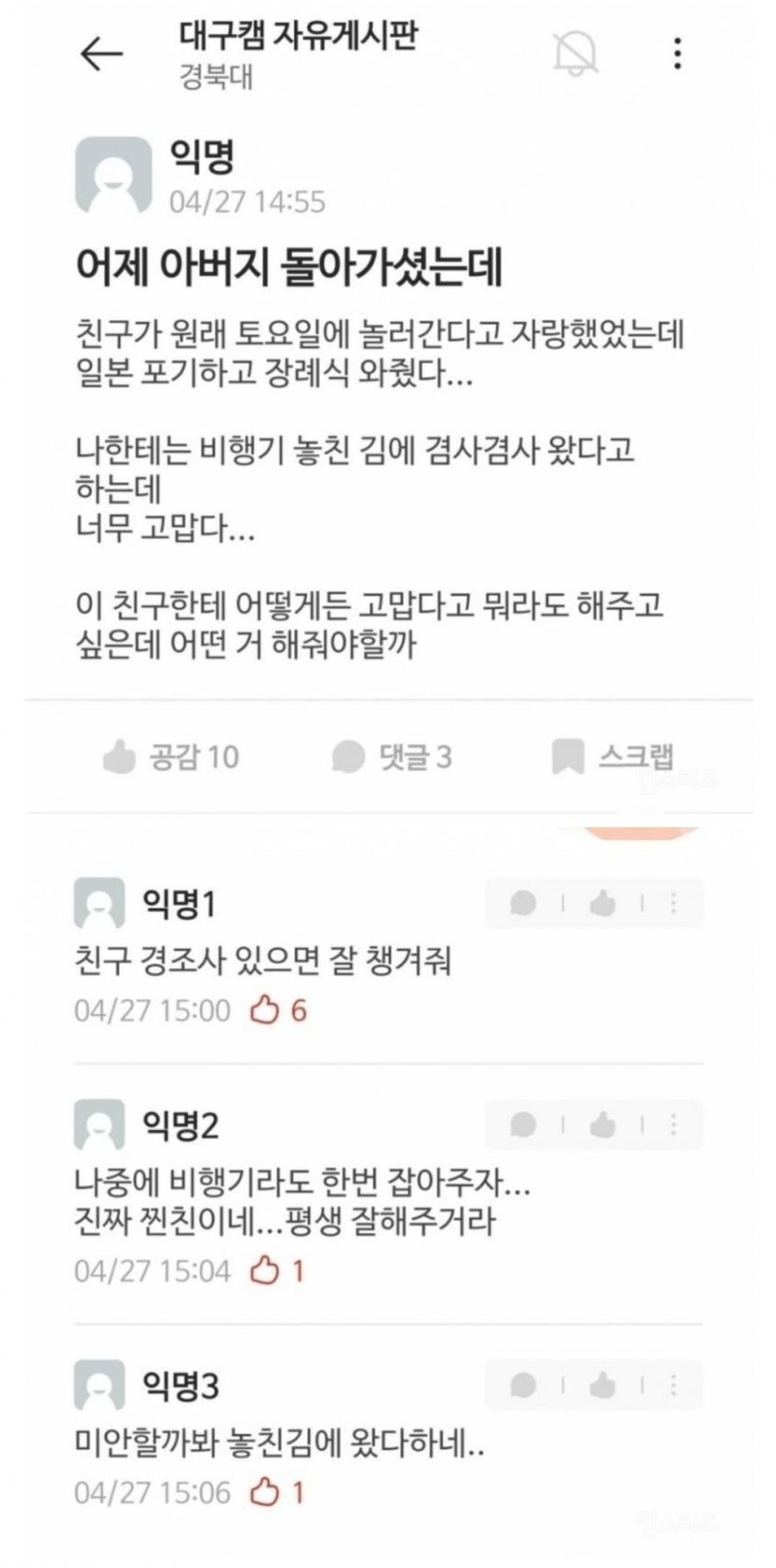 해외여행 포기하고 장례식에 온 친구..Jpg
