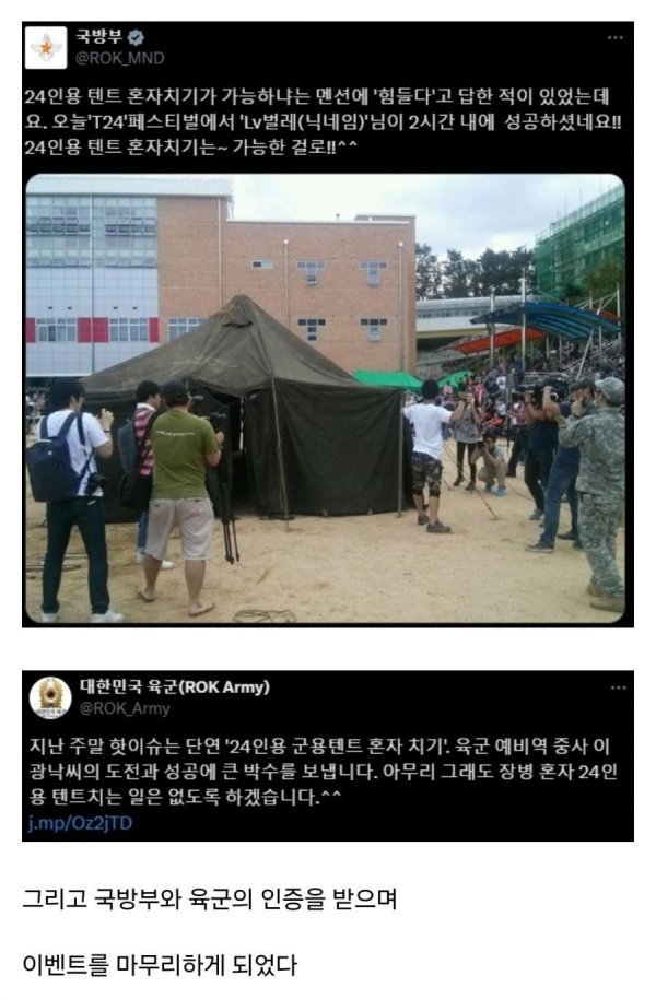 과연 '벌레'는 혼자서 거대한 텐트를 치울 수 있을까? 이 전투의 결과는 예비군 커뮤니티에 영원히 남을 전설이 될 것이다! 마지막 순간에 다가가며 관중들의 숨조차 멈춘 가운데, '벌레'의 도전이 어떻게 끝날지 귀추가 주목된다. 진실이 밝혀진다!