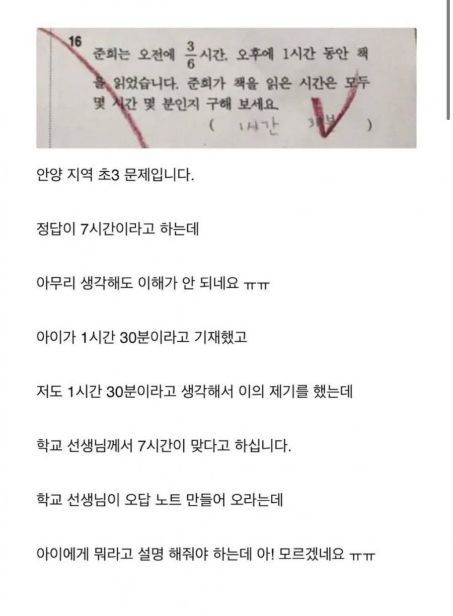 준희의 엄마는 "아이의 독서 시간이 1시간 30분이라고 분명히 적혔는데, 도대체 어떻게 7시간이 나올 수 있나요?"라고 호소하며 혼란에 빠졌습니다. 문제 해결을 위해 학교 선생님에게 이의를 제기했지만, 선생님은 "7시간이 맞다"고 단호히 말하며 오답 노트를 작성하라는 요구까지 했습니다.