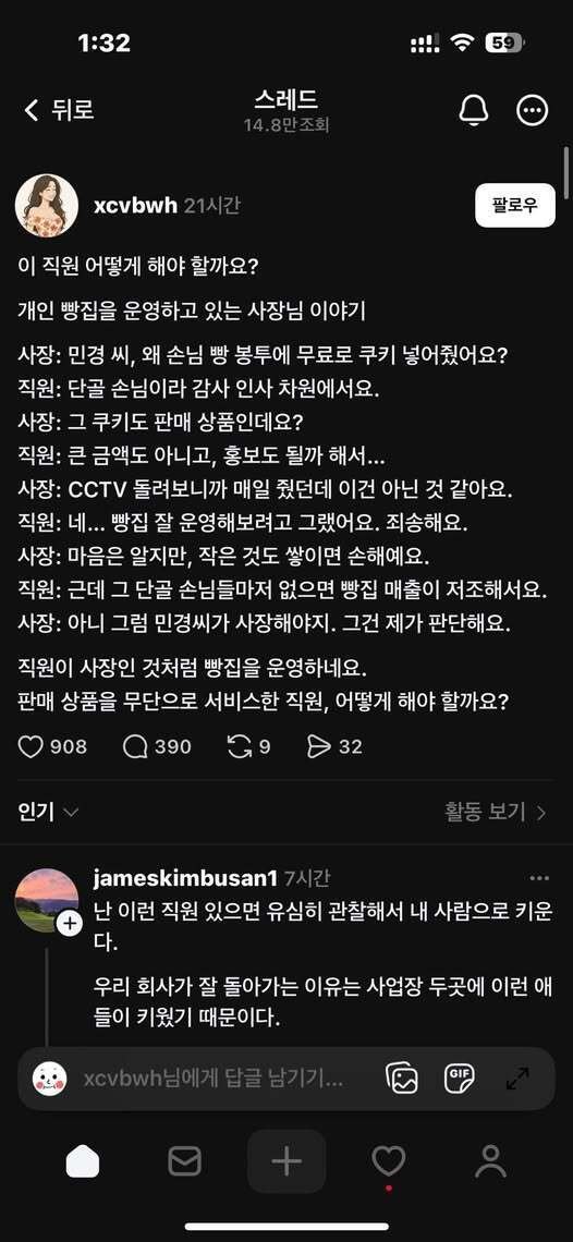 주인몰래 손님한테 서비스 준 빵집직원 ㄷㄷㄷ JPG