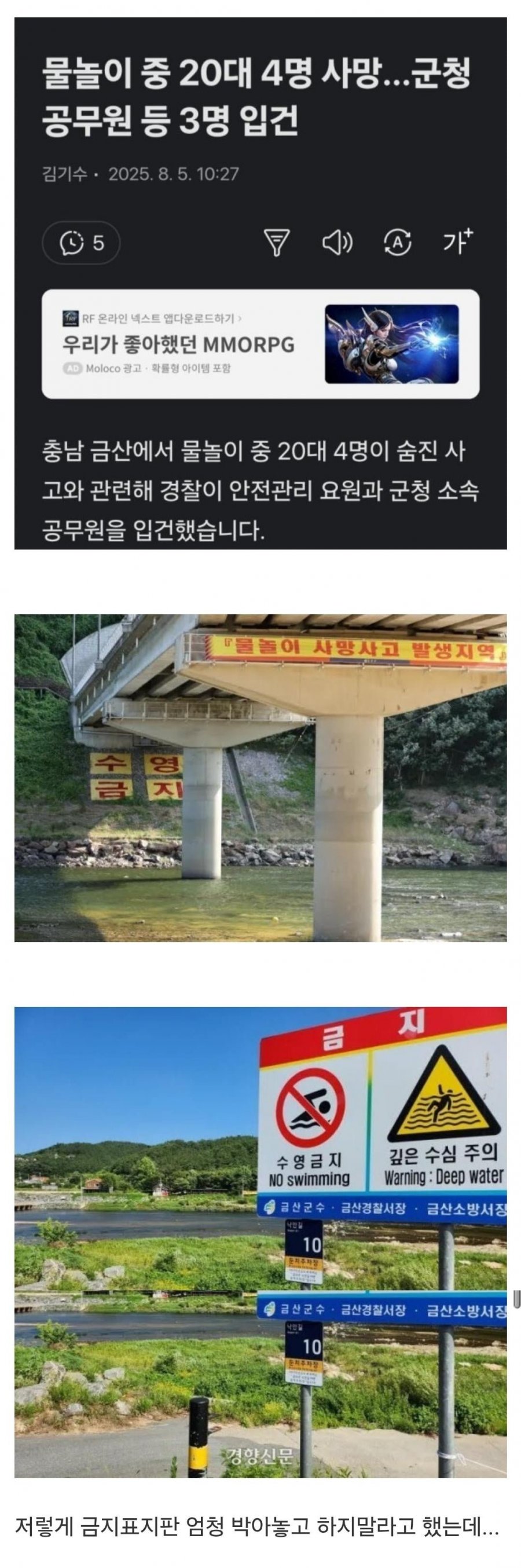 충남 금산에서 발생한 물놀이 사고가 충격의 소식으로 전해졌다. 이번 사고에서는 무려 20대 4명이 물놀이 중 사망하는 끔찍한 사건이 발생했다. 경찰은 사고와 관련하여 안전관리 요원과 군청 소속 공무원 3명을 입건하였고, 이 사태의 뒷면에 숨겨진 진실을 파헤치기 시작했다.